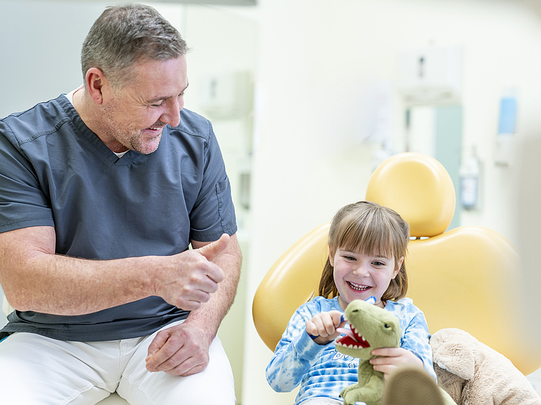 Es ist uns ein wichtiges Anliegen, unsere jüngsten Patienten behutsam an die Praxisabläufe zu gewöhnen. Mit besonderer Herzlichkeit gehen wir auf die Kinder ein und gewöhnen sie im Fachgebiet der Kinderzahnheilkunde Schritt für Schritt, daran, was ein Zahnarztbesuch bedeutet. Wir haben unser zahnärztliches Konzept sehr gut auf die jungen Patienten abgestimmt. Unser Team setzt deshalb alles daran, dass Ihr Kind den Zahnarzttermin in bester Erinnerung behält.